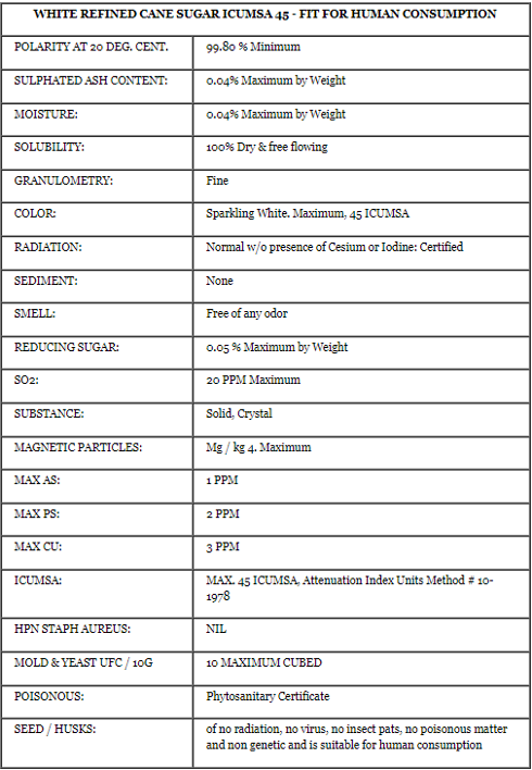 WHITE REFINED CANE SUGAR ICUMSA 45 Brown sugar icumsa 600-1200